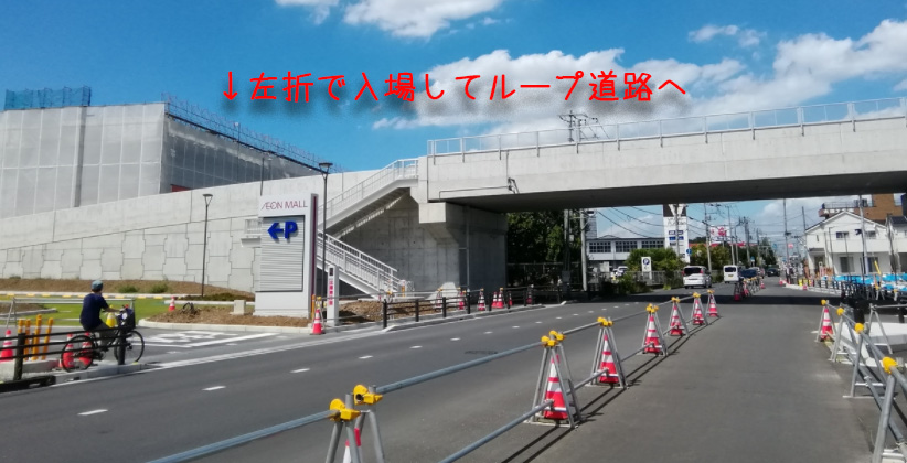 出来る前から渋滞が懸念されていた上尾イオンですが、左折で入るループ道路を作る事で渋滞対策をしているようです。