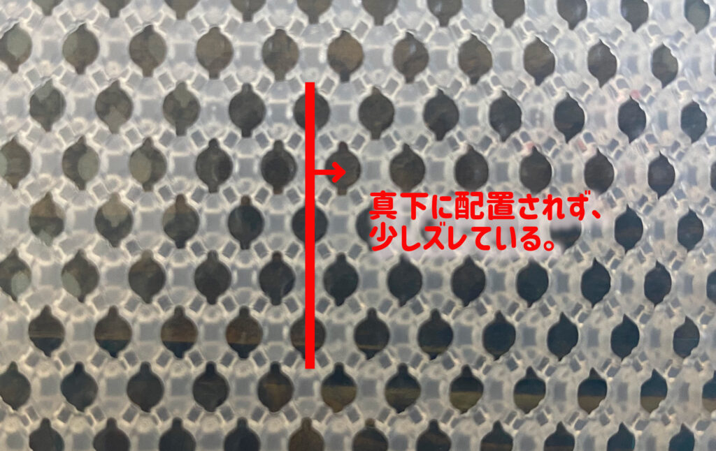 アクアビーズのトレイは、ビーズを並べる位置が真下に配置されず、交互に微妙にズレています。