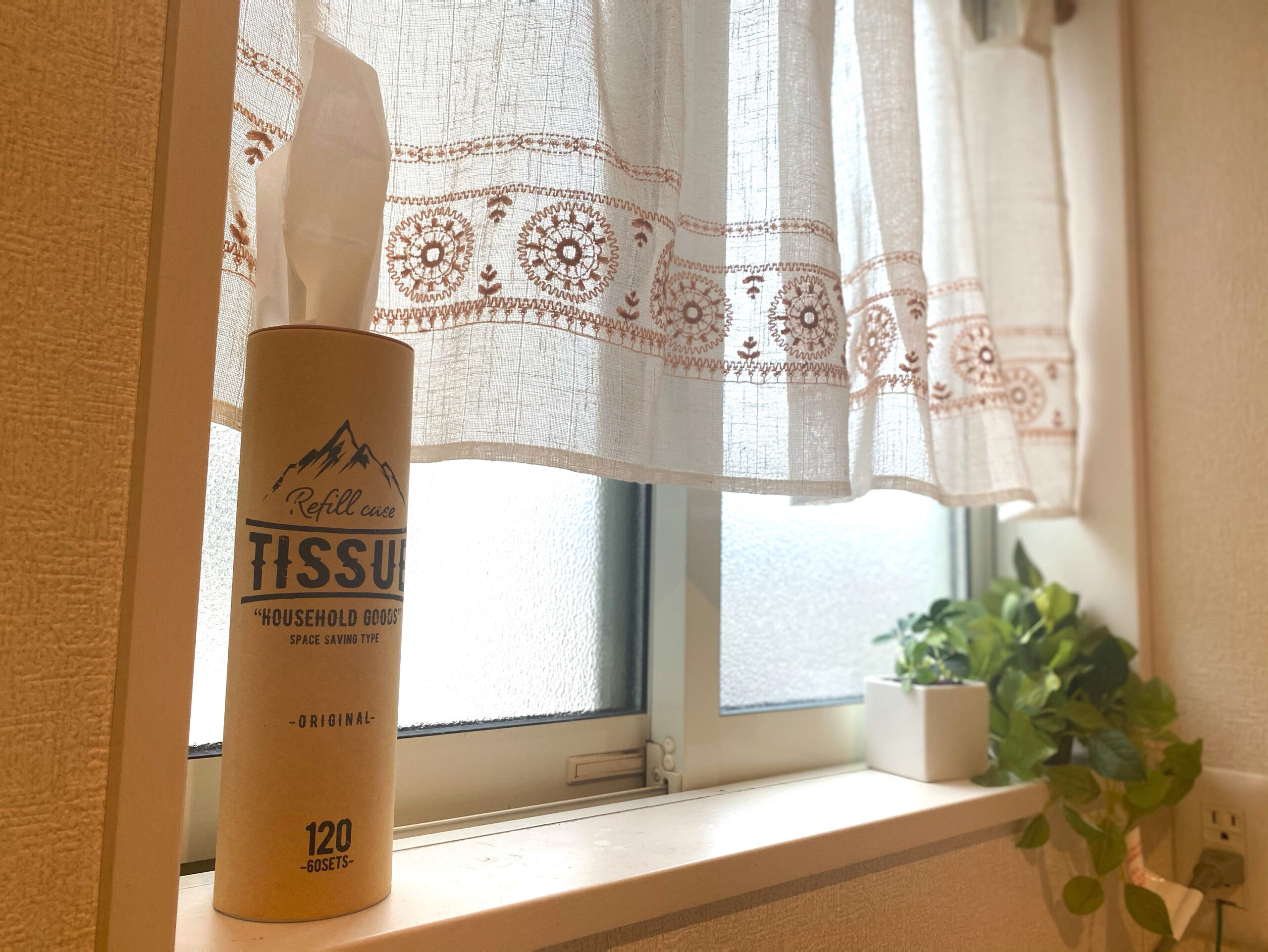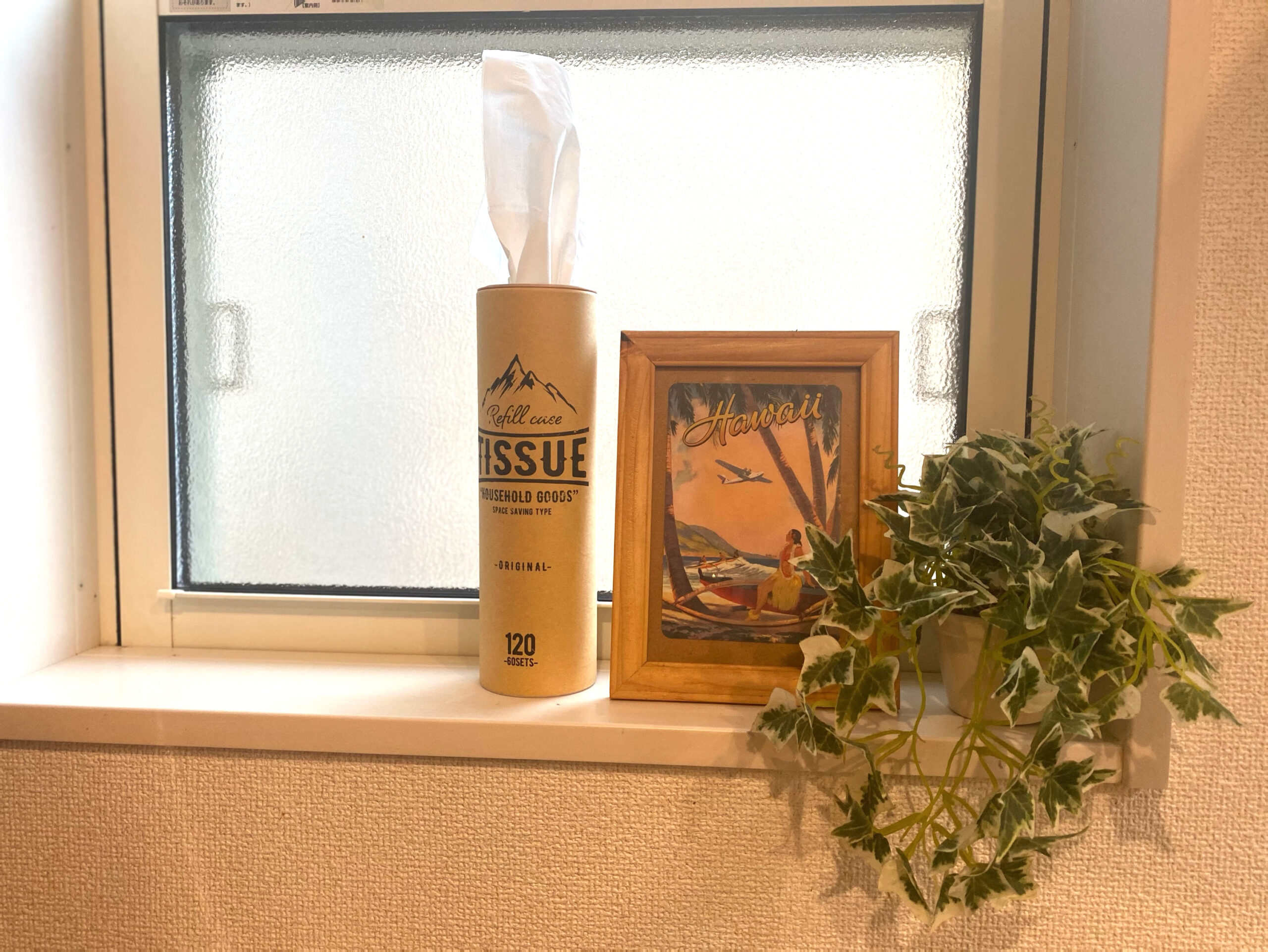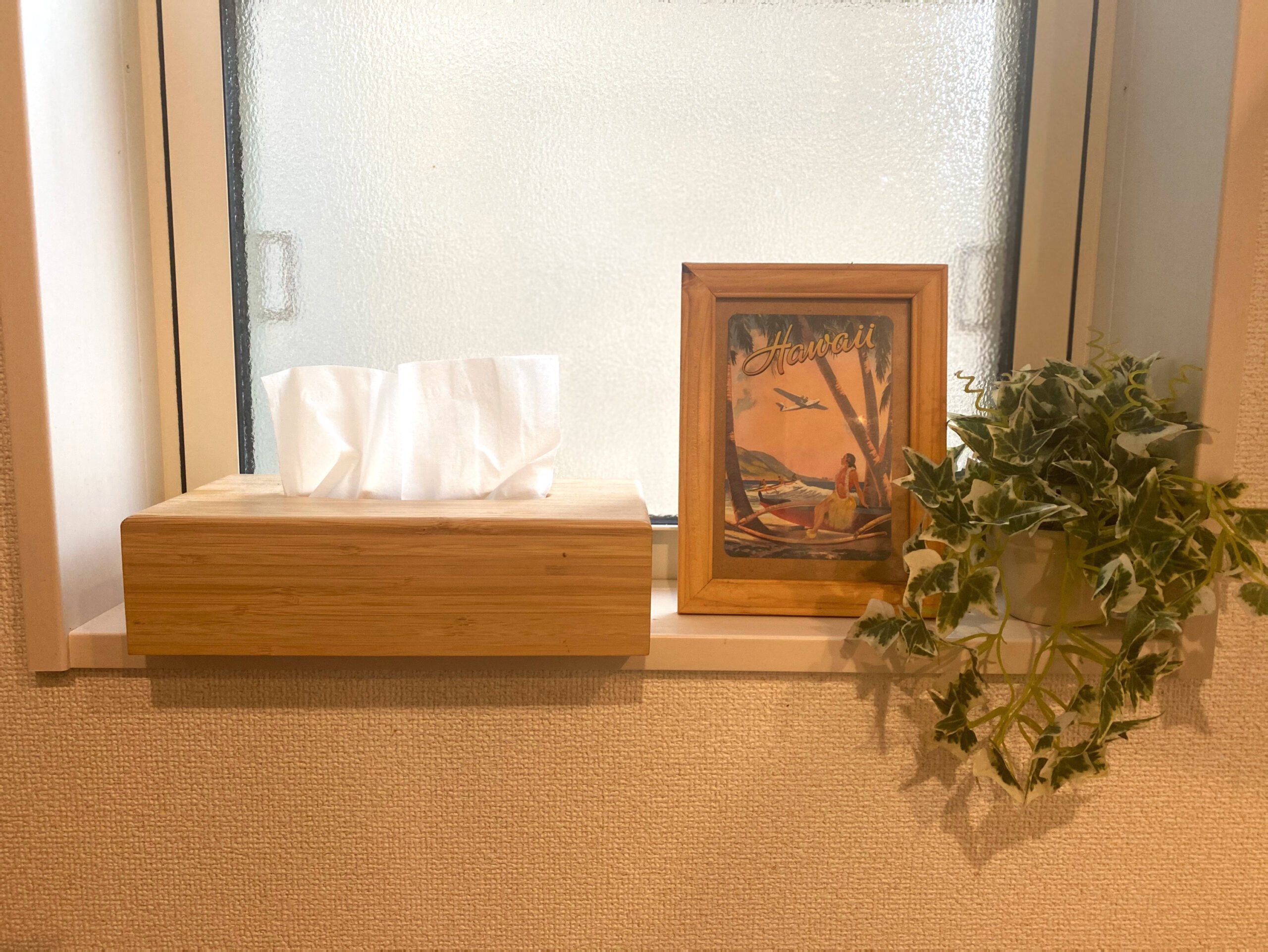 また、ずっとティッシュを置きたかったけど、置き場所にこまっていた洗面所にも。