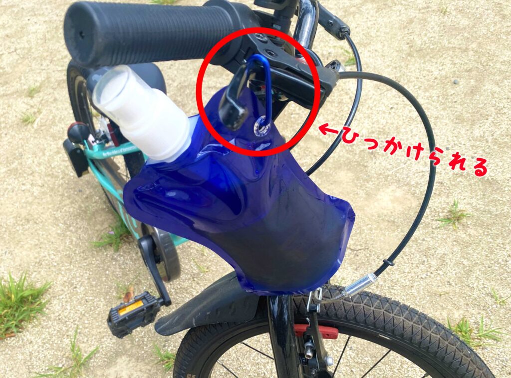 私たちは公園に付くと、子供が好きに飲めるように自転車のハンドルに引っかけています。