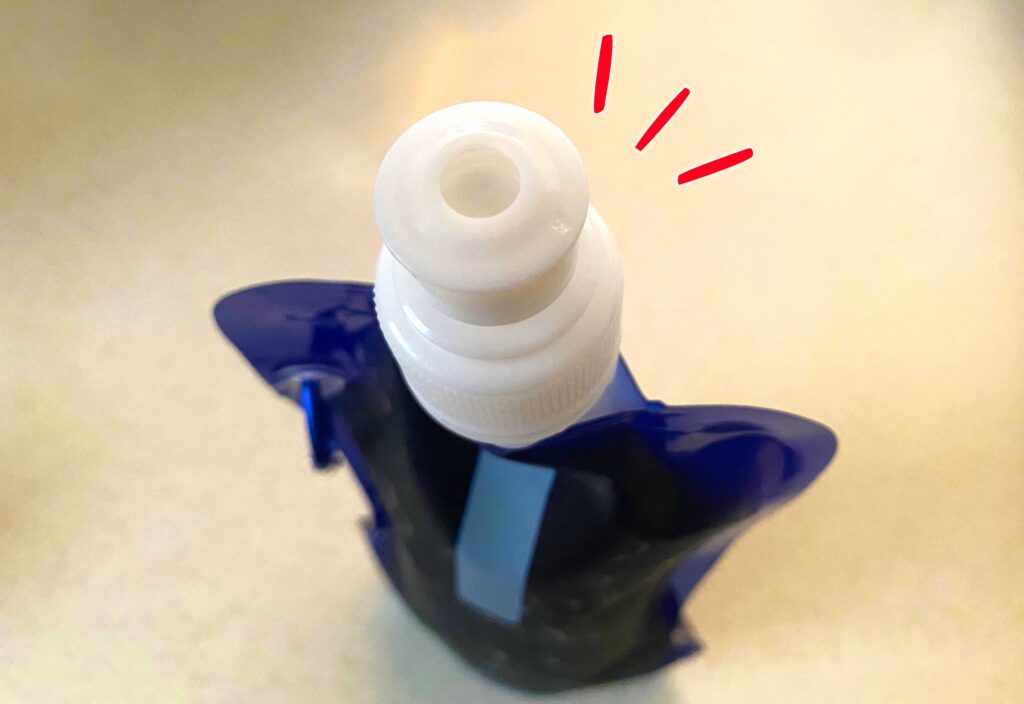 このように、ぽこっと口にくわえて飲むような形になるので、こぼしにくいです。