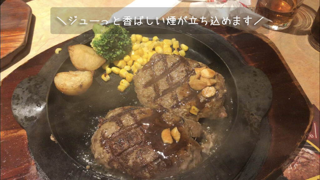 ハンバーグを食べた感想は、肉汁がジュワーッとあふれ出てとっても美味しい!