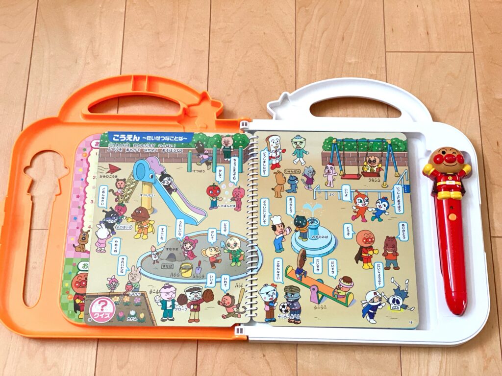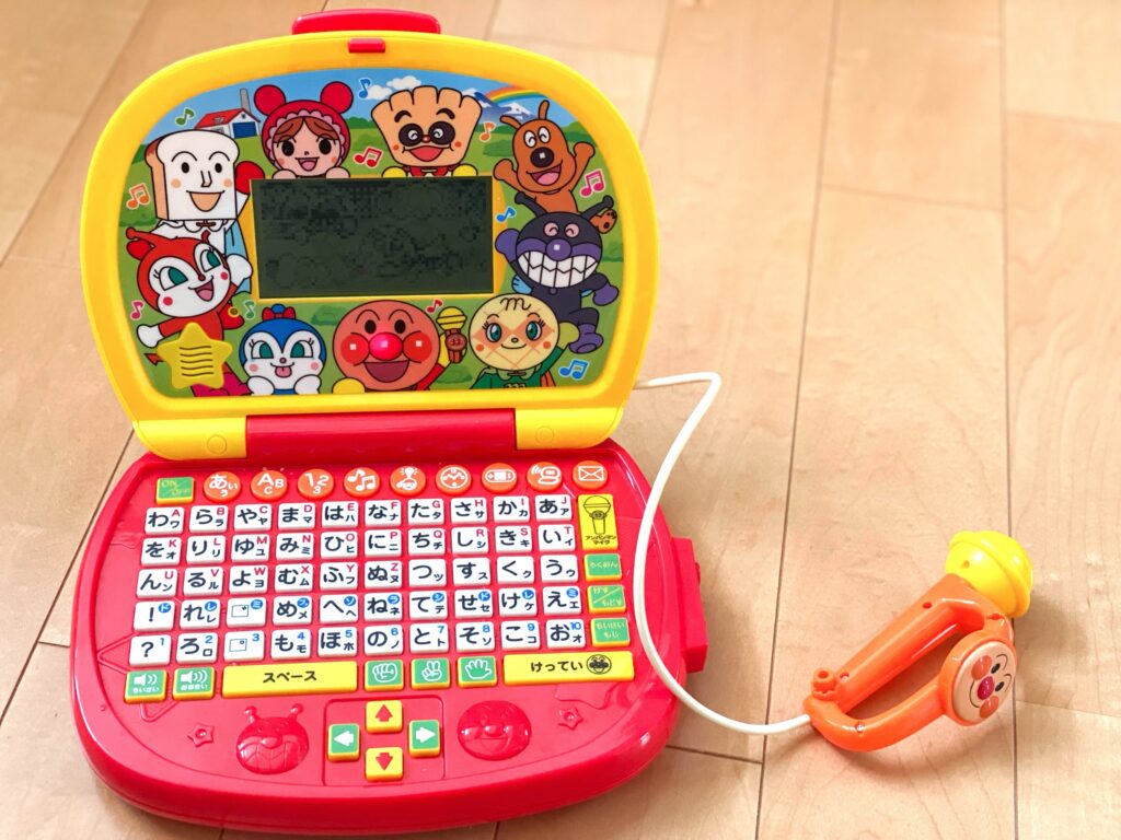 当時はポチポチ押して音が鳴ったり、アンパンマンが喋るのが楽しいという遊び方でしたが、今はひらがなを覚えるために使ったり、英語で言葉を聞いてみたりと遊び方が変わりました。