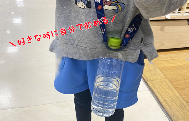 子供もペットボトルを肩から下げている特別感で、嫌がらず持ち歩いてくれます。(今のところ…)