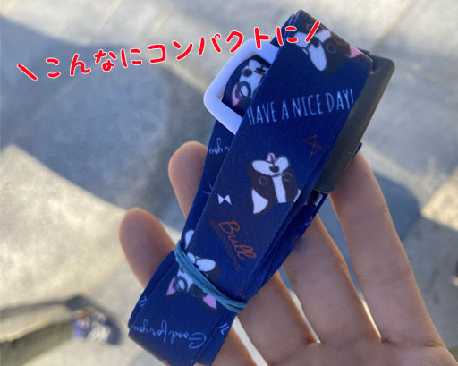 たたんで輪ゴムで縛ってしまえば、こんなにコンパクトになります。