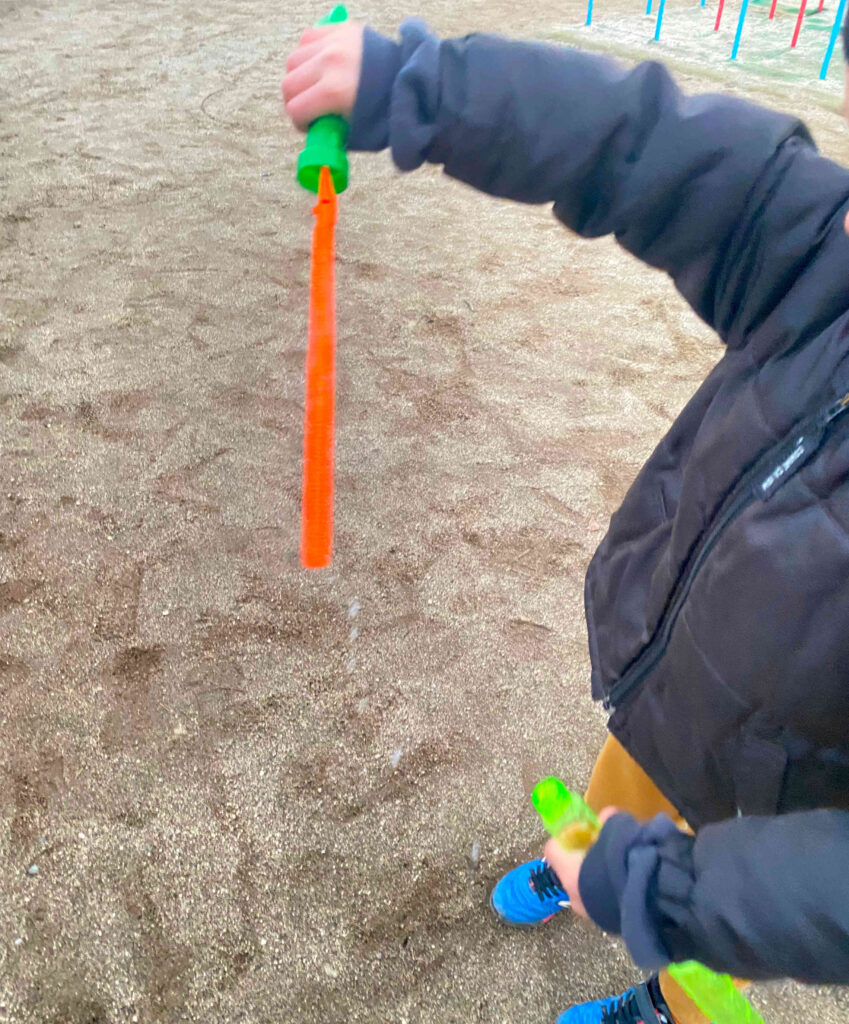 スティックを持って回転してみたり、走ってみたりと、いろんな作り方が楽しめます。