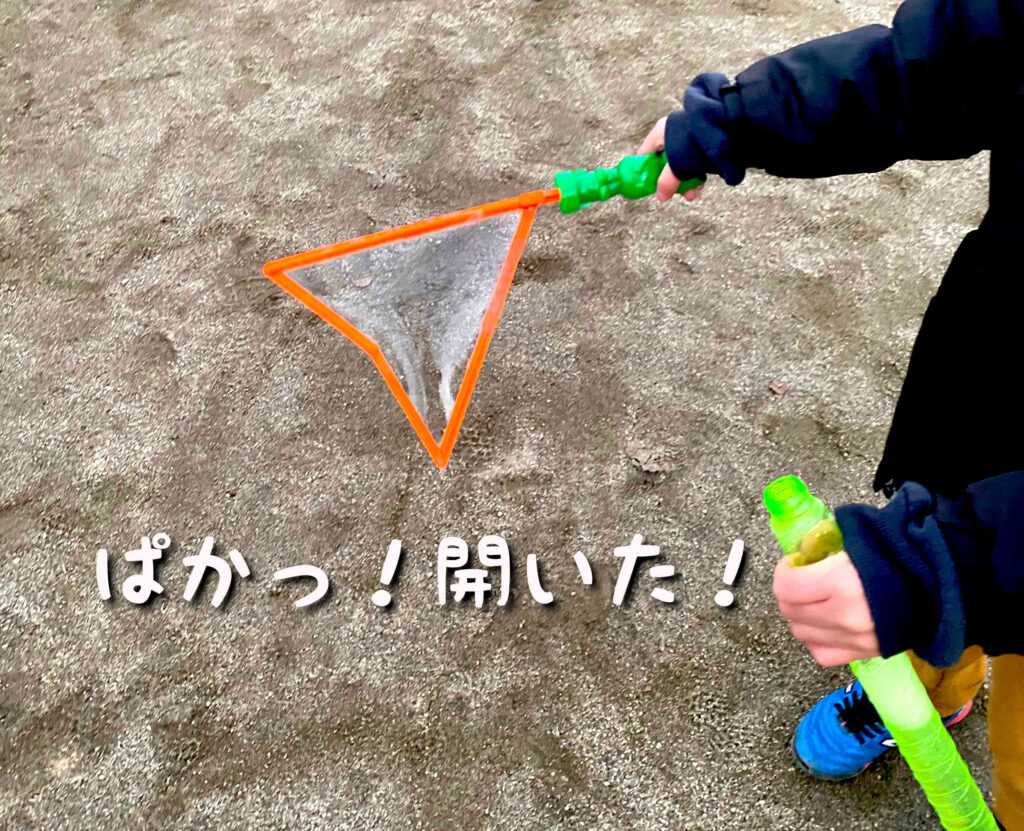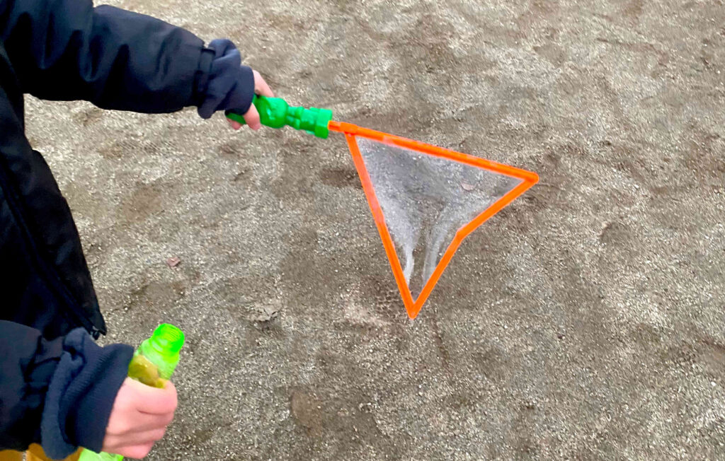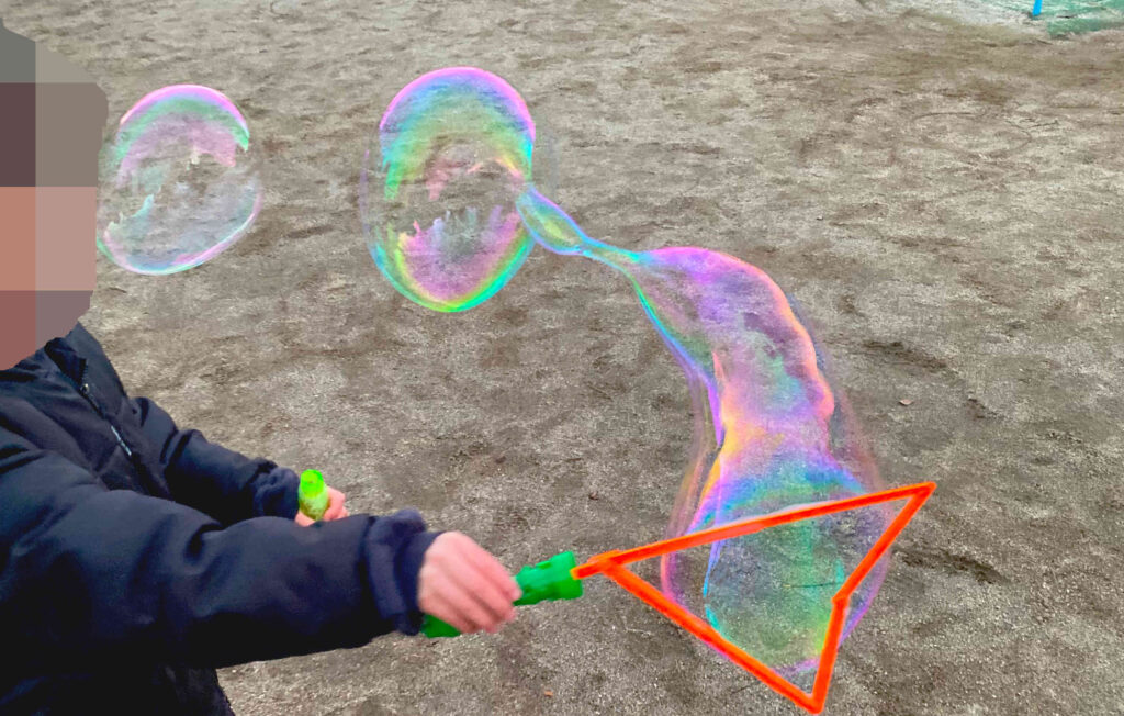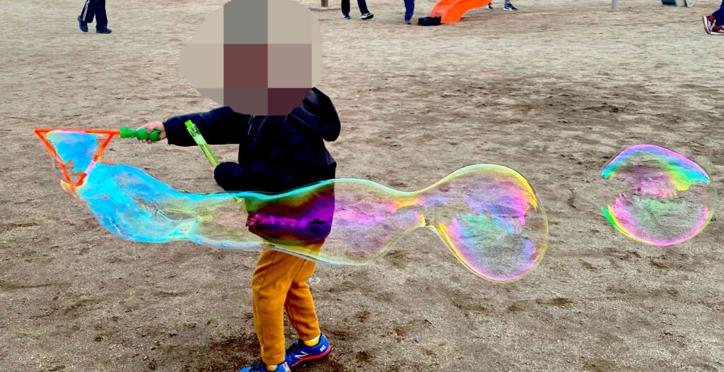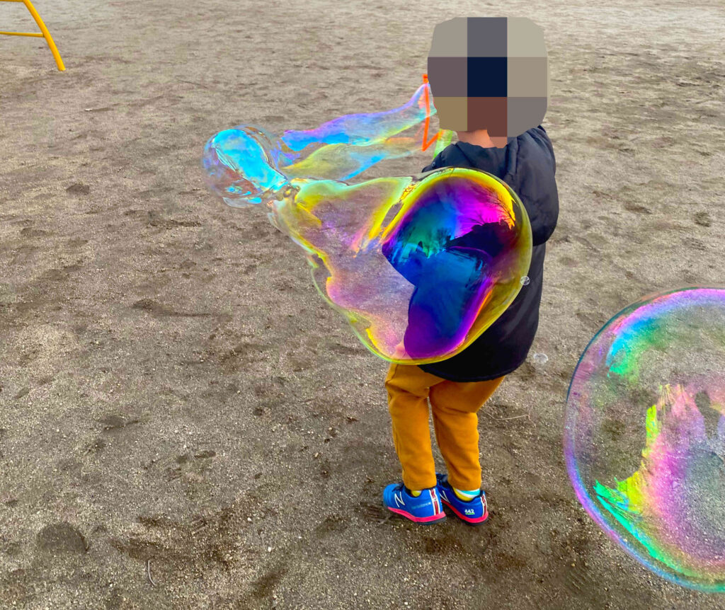 開いた状態で持たせてあげると、小さな子でも大きなシャボン玉を作る事ができたので、操作が難しい場合は親がサポートしてあげてください!