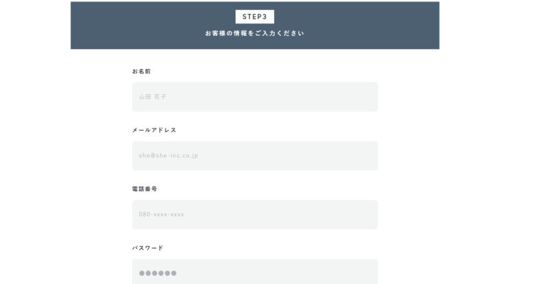 最後に名前・メアド・電話番号・パスワードを入力して予約完了です。
