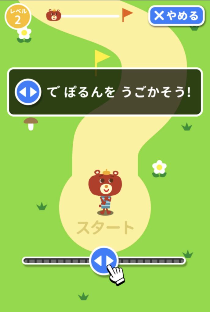 その中でも、手先をコントロールする力を高めるゲーム「ぽるんのさんぽ」というのに挑戦してみる事に!