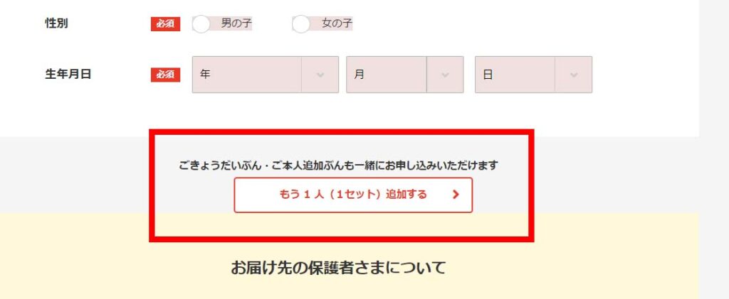 ② 情報入力が終わると下に「もう1人(1セット)追加する」というボタンがあるのでクリック