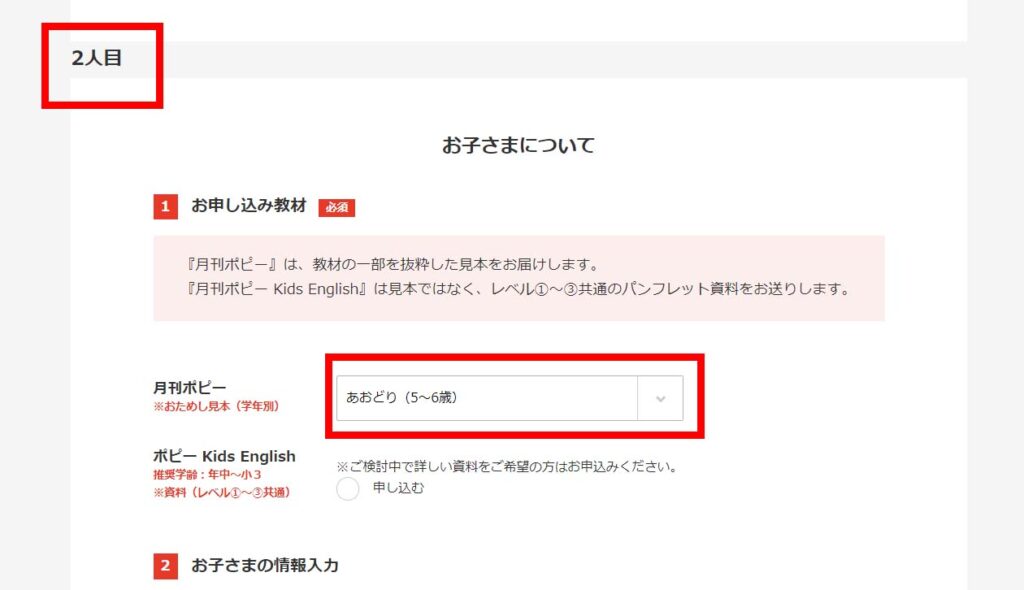 ③ 「2人目」となり、もう1つの教材申込ができます。
