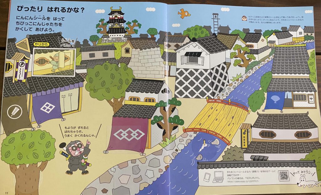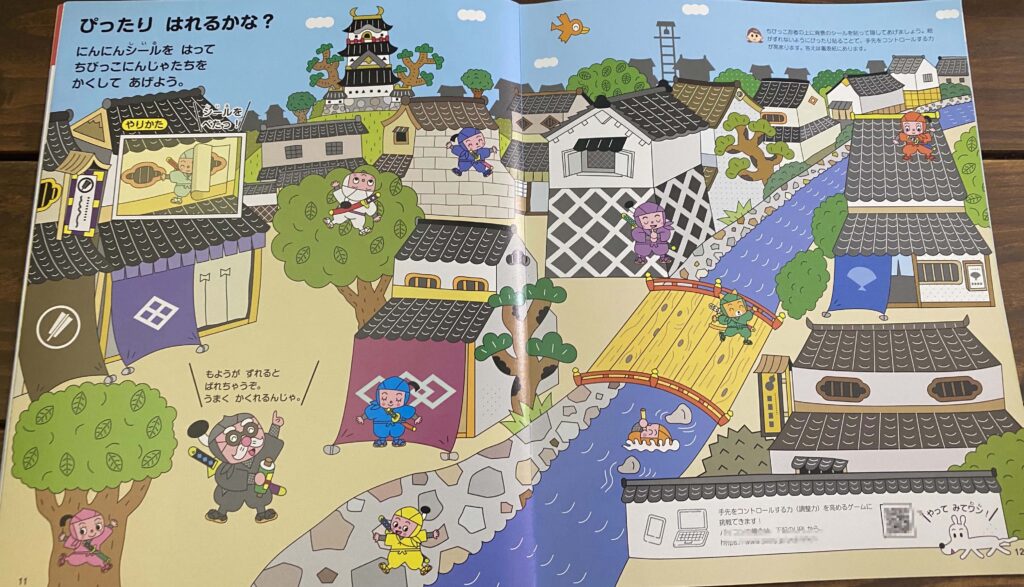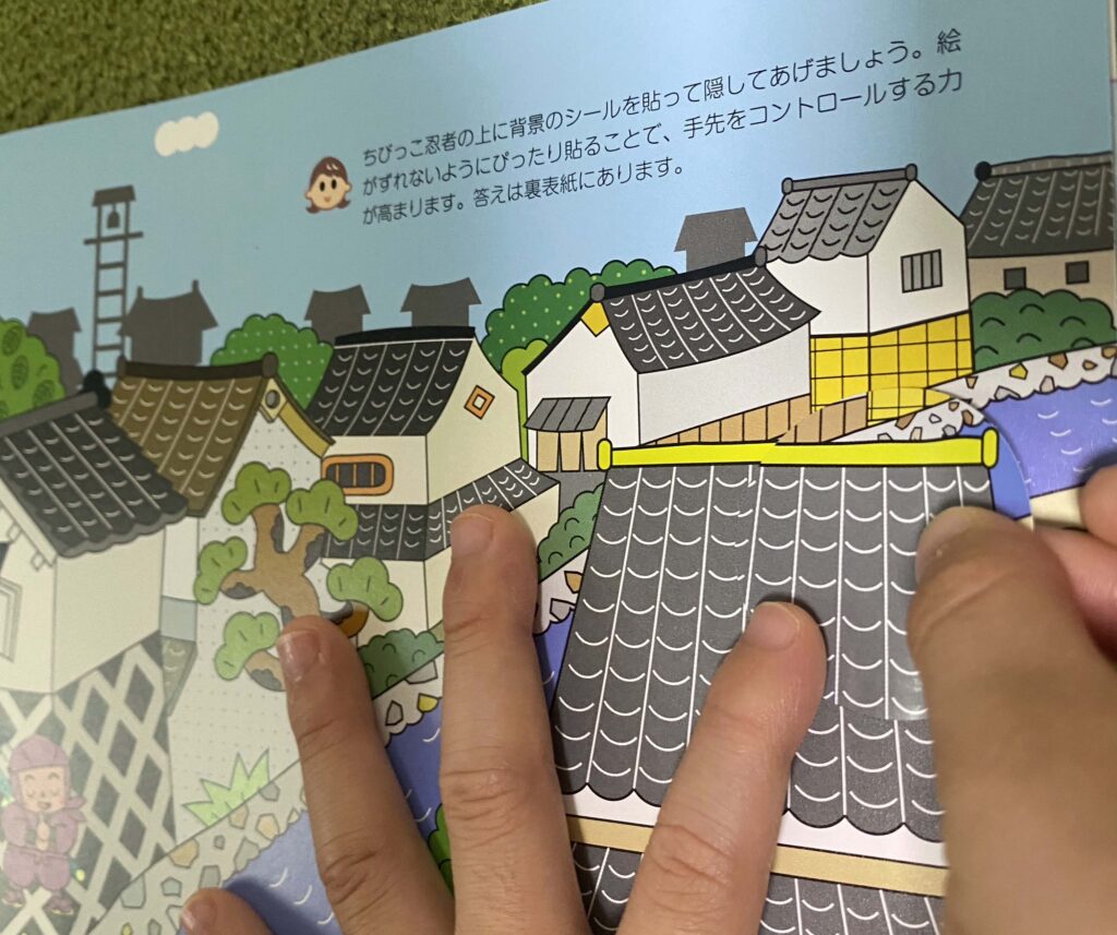 背景に合うシールをピッタリ貼って、忍者を隠すというもの。